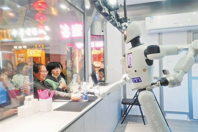 春晚同款机器人 中山路上卖货忙 可完成商品抓取、收款等全流程服务