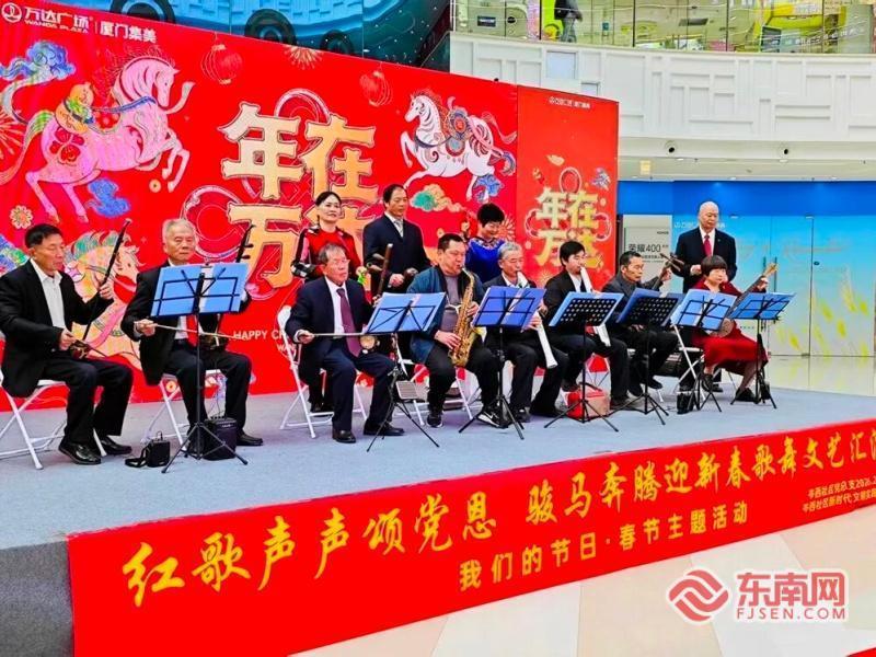红歌嘹亮,乡韵迎春(岑西社区新时代文明实践站供图) 乡音唱响连台戏,邻里共聚暖意浓 红歌嘹亮,乡韵迎春。近日,岑西社区新时代文明实践站将红色旋律与闽南风情融合,《我和我的祖国》《北京有个金太阳》等激昂旋律歌颂党恩,《爱拼才会赢》等乡音曲目传递乡情,在歌舞声中汇聚邻里温情。 银亭社区新时代文明实践站将汇演搬进集美万达广场,歌仔戏、台湾民谣、太极功夫扇等节目轮番登场,同步开展移风易俗宣传,践行“群众演、群众看、群众乐”的温暖互动。 东宅村新时代文明实践站组织青少年传唱闽南童谣,在快板声中传承年俗文化;东辉村新时代文明实践站则以“文艺演出+健康服务+新春送福”模式,将歌舞、高甲戏与义诊、送春联结合,让村民在家门口乐享“文化宴”、收获“健康福”。