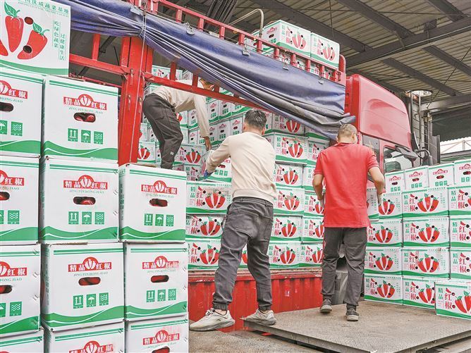 闽南农副产品物流中心,工作人员忙着将蔬菜装车发往北方。