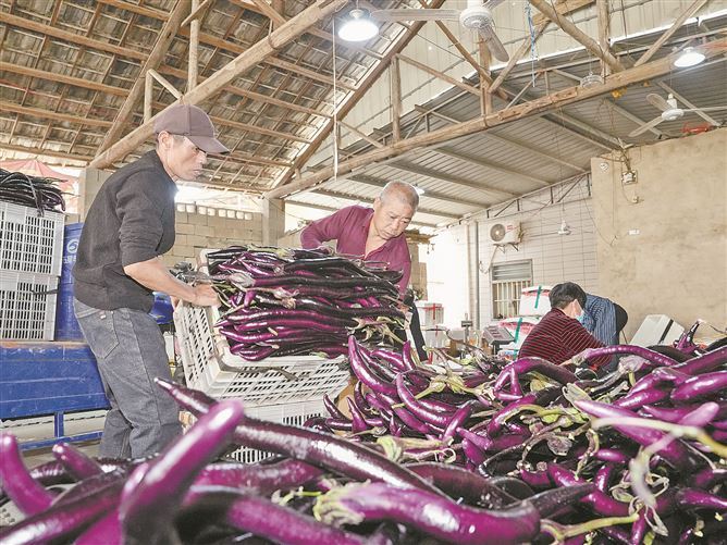 翔安区内塘边的胡萝卜丰收。 厦门日报讯(文/记者 吴晓菁 图/记者 卢剑豪)清晨,天光未亮,闽南农副产品物流中心灯火通明。货车轰鸣、人声鼎沸,来自厦门市翔安区的黄皮椒还沾着露水,刚采收的胡萝卜带着泥土香,它们在此集结,即将踏上北上的旅程。几乎同一时刻,厦门市同安区蔡宅村的温室大棚里,修长的紫长茄正被小心摘下;厦门市利泰盛食品冷冻有限公司的流水线上,胡萝卜经过清洗、分拣,即将发往日本、韩国乃至中东;而在厦门分分钟食品有限公司的基地,工人正将符合出口标准的彩椒打包入箱……冬春时节,这些在厦门的田间地头、加工车间同步发生的场景,共同拼接出一条反季节蔬菜产业链的图景。 当北国大地沉寂之时,地处亚热带的厦门却暖阳和煦,凭借着独特的冬季光热资源,巧妙地将气候的“温暖优势”转化为市场的“供给强势”。这里的土地在冬日依然忙碌,孕育出胡萝卜、紫长茄、辣椒等特色品种,它们不仅填补了北方市场的季节空白,更通过持续升级的产业链条,成为观察中国现代农业发展的一个鲜活样本。 从“一根茄”到“一条链” 小蔬菜做大文章 ●蔡宅村分布着15家代收点,形成辐射周边的产销中转网络。高峰时期,一个代收点每日可发出十几吨,直达北京、上海等十余个城市的市场。 ●进入采收高峰后,连为本村配套的纸箱厂都需开足马力,日发纸箱上万件,形成了“种植-采收-分拣-包装-运输”的完整微循环。 冬日的同安区蔡宅村,暖阳洒在田间地头,一串串紫红色的紫长茄挂满枝头,饱满修长,透着新鲜。 在卓清凯的紫长茄收购点,农户们陆续送来刚采摘的茄子,称重、结算、装箱,一派繁忙景象。这个有着25年收购经验的“老行家”,每天在这里见证着冬日蔬菜的丰收与热销。最近,紫长茄迎来了好行情。他喜滋滋地说:“去年收购价才三四毛钱一斤,今年涨到5元一斤,最高的时候5.5元一斤。” 来自本村的农户卓丁贤刚卸下一车450公斤的茄子,经过扣除车辆空重核算后,当场拿到了现金结算款。“都是现结,卖菜的钱能马上到手,心里踏实。”卓丁贤笑着说。 在蔡宅村,紫长茄的“长”是直观的——最优的果实长度可达六七十厘米。但它的“长”更体现在时间维度上:采收期从每年12月持续至次年6月,跨越了整个北方蔬菜的供应淡季。 蔡宅村党支部书记、村委会副主任卓林海算了一笔经济账:“采摘期长达7个月,亩产近2万斤,算下来一亩地年产值能到3万元。” 这份“紫色财富”的背后,离不开成熟的产销体系支撑。村里分布着15家代收点,形成辐射周边的产销中转网络。清晨采摘,当天就能发货,高峰时期,一个代收点每日可发出十几吨,直达北京、上海等十余个城市,实现从田间到餐桌的快速链接。 产业链的延伸效应显而易见:进入采收高峰后,连为本村配套的纸箱厂都需开足马力,日发纸箱上万件,形成了“种植-采收-分拣-包装-运输”的完整微循环。“现在包装不仅要内部规整美观,外观设计、印刷也要讲究,这样才能将紫长茄的销路越推越广。”卓林海说。 这种产业链思维,在同安区“新农人”李志华身上得到了更具创新性的实践。 4年前,他放弃城里的工作返乡种茄,如今已发展成产销一体的家庭农场。他的模式不仅让自己受益,也辐射带动了周边农户。周边农户可将采摘的茄子送到他的农场统一销售,价格更有保障,收入也更稳定。 他将茄子精细分级:品相最佳的精品,经精心包装直供大城市的高端商超;规格稍低的,则加工成袋装产品,精准对接工厂食堂需求。 不仅如此,他还积极探索推行“紫长茄-水稻”轮作模式。“5月收完茄子种水稻,9月割了稻再种茄子。”李志华说,政府对水稻种植有专项补贴,这一模式不仅提高了土地利用率,还降低了单一作物种植的风险,让农业种植“不亏本、有奔头”。从单一种植到一体化经营,再到生态轮作,一根茄子撑起的,是一个更加稳健、可持续,并能带动更多农户共同增收的产业模式。 从“沙土地”到“洋超市” 胡萝卜跨洋出海 ●自2010年以来,翔安胡萝卜出口农残检测连续保持“零超标”,实现了进口国质量“零通报”的业绩,并赢得“国家级出口食品农产品质量安全示范区”和“国家级农业标准化示范区”的荣誉称号。 ●我市胡萝卜生产企业不仅稳固了日本、东南亚等传统市场,还成功开拓中东、非洲等新兴市场。 清晨7时,厦门市利泰盛食品冷冻有限公司的加工车间已笼罩在氤氲的水汽中。4条生产线全速运转,机器的轰鸣与人声交织。 流水线的起点,满载着“红誉11号”胡萝卜的货车正排队卸货,泥土的气息扑面而来。胡萝卜翻滚着进入洗菜机,经过冰池的瞬间锁鲜,然后被传送带送至分拣台前。工人们戴着防水手套,拿起、审视、归类。320克以上的“2L级”被放入精品筐,准备装袋出口;稍小的按S、M、L规格分入不同箱体;偶有裂口或畸形的,则被果断挑选出来,放入一旁的次品输送带进行集中处理。 “出口产品要严把关,每一根都要符合标准。”来自山东的工人刘友云说。她和工友从1月中旬便“扎根”车间,要赶在春节前完成激增的海外订单。 业务经理陈玮森穿梭在车间与仓库之间,确认着当天的物流安排:“现在一天要加工32车至36车原料,每车11吨至15吨,总产量能达到500吨左右。”他指向打包区,一箱箱贴着泰国标签的10公斤装货物正在封箱,另一边,发往加纳和中东巴林的货