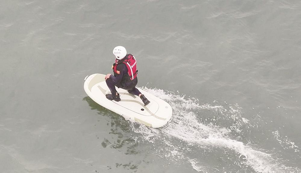 厦门海岸线来了一群“钢铁侠” 利用人体外骨骼、AI眼镜、水上飞翼桨板及机器人进行安全巡护