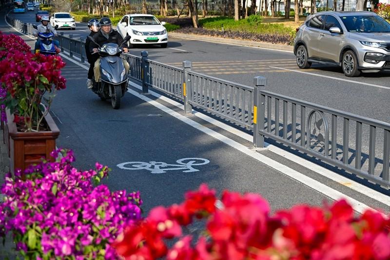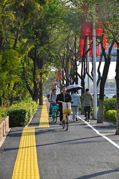 同集南路(集杏海堤—集美大道)非机动车道。 平顺缓坡替代了路缘石坎,独立的非机动车道崭新亮相,高亮的交通标识清晰指引——近日,集美区同集南路、杏前路、新城大道完成“微整形”,以全新面貌服务市民出行。