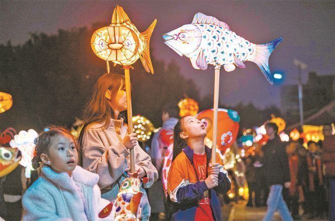 各式各样的鱼灯深受大小朋友喜爱。 厦门日报讯(文/记者 房舒 图/记者 林铭鸿)昨天傍晚5点多,翔安欧厝社区的老巷里,疾步前行的史文沧跟每个遇到的居民打着招呼:“晚上来‘迎灯’啊。”作为这次元宵节欧厝“迎灯”活动的灵魂人物,这位红砖雕非遗代表性传承人忙得脚不沾地:“我们去看看金门来的乡亲们准备好没。” 鱼灯在风中轻轻摆动,史文沧继续带着队伍走街串巷——下午4点的鱼灯比赛刚落幕,他和居民、学生们就马不停蹄投入“迎灯”前的最后巡游,为晚上的“万鱼潮向”预热。“闽南渔村的元宵节‘迎灯’,老早就有了。”史文沧说:“这寓意年年有余、渔获满仓,盼着村里风调雨顺、家人平安。”他告诉记者,今年是他们组织欧厝“迎灯”活动的第二年,“去年只有欧厝,今年多了其他社区加入,真正是‘千厝同乐’。” 史文沧说,鱼灯的传承不止于元宵夜:“虽然今晚是重头戏,但我们的鱼灯课堂整年都开着。”从竹篾编织到彩纸糊制,从图案绘制到骨架调整……越来越多人前来学习做鱼灯,学习这项老手艺。 傍晚6点多,巷口空地上,一盏2米多长的巨型鱼灯格外吸睛,制作者是“新居民”——驻村艺术家郑伟财。他在欧厝开了家陶艺工作室,这盏鱼灯是他耗时两周打磨出的得意之作:“挑了两个最好的,光骨架就扎了好几天。”在他看来,陶艺和鱼灯都充满手作的温度,“能把自己的手艺融入渔村元宵,特别踏实。” 居民王丽婷高高兴兴地帮着邻居整理鱼灯。这几天,看着“新居民”带着热情参与,老邻居们也重拾手艺,她说:“现在的元宵节,这种烟火气,才是我们想要的样子。” 6岁的曾楚愉攥着自己亲手做的鱼灯,眼里满是对“迎灯”活动的期待。曾楚愉的妈妈说,“想让孩子多接触接触,把文化传承记在心里。” 人群中,还有一群特殊的客人——来自金门同名村欧厝村的一行十余人,专程跨海而来。“听说今年迎灯活动很热闹,特意组团来看看。”来自金门欧厝村的戴德强说:“鱼灯是我们共同的文化记忆,看着这些熟悉的鱼灯,就像回到了小时候的元宵夜。”他表示,这样的活动不仅是文化的传承,更是两岸同胞情感的联结,“希望以后能多办这样的活动,让我们的乡情越来越浓。” 昨晚7点,越来越多的鱼灯汇成“鱼群”,绚烂烟花绽放夜空。史文沧举着鱼灯走在队伍前,郑伟财的巨型鱼灯在队伍中格外醒目,曾楚愉的小鱼灯在灯河里闪闪发亮,金门的乡亲们也举着鱼灯加入队伍。锣鼓声起,迎灯队伍沿着社区海岸线前行,鱼灯如星河落海,与远处的烟火交相辉映。 这一夜,鱼灯照亮的不仅是古厝老巷,更是人心深处的牵绊。 |
