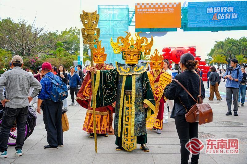 三星堆人偶巡游(中华街道供图) 德阳地处成都平原腹心地带,是成渝地区双城经济圈重要节点城市,坐拥千年古蜀文脉、雄厚产业根基与丰饶物产,三星堆“沉睡数千年 一醒惊天下”,剑南春醇香绵延千年,绵竹年画、中江挂面等非遗技艺代代相传,工业文化、古蜀文化、川菜文化、雪茄文化交融共生,勾勒出独具特色的城市名片。厦门作为海上花园、开放前沿,山海秀丽、商贸繁荣,两地虽相隔千里,却在文化交融、产业互通上有着天然契合度,这场跨越山海的相聚,既是好物的相逢,更是情谊的联结。