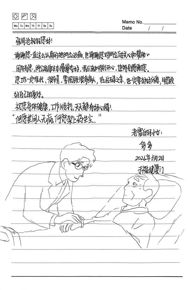 患者孙女多多亲手写下感谢信(东南网记者 刘玮 摄) 东南网3月19日讯(本网记者 刘玮)膀胱被增生腺体完全堵死、反复尿路感染失控,叠加糖尿病、血栓、心衰、肾功能衰竭,常年依赖血液透析维持生命,82岁高龄老人在深圳辗转四月求医无门,突发感染性休克直接推入ICU,生死一线间,一场跨越四百里的跨省转运,拉开了这场生命营救的序幕。从绝境濒危到转危为安,从卧床病危到平稳康复,厦门海沧医院多学科团队攻坚克难,凭借先进微创技术逆天改命,历经数月精心救治,成功将老人从生死线上拉回。2026年3月初,患者孙女亲手写下感谢信,一句“但愿世间人无病,何愁架上药生尘”,道尽全家对医护人员的无尽感激,也见证了这场与死神博弈的暖心救治。 求医四月陷绝境 跨城转运寄希望 2025年,82岁的患者老雷被一身复杂重症缠身受困:重度前列腺增生已完全堵塞膀胱,排尿通路梗阻引发反复难治性尿路感染,糖尿病、血栓、心衰等基础病更是让本就孱弱的身体雪上加霜。老人在深圳辗转治疗四个月,因病情过于复杂危重,始终未能得到针对性救治,身体状况持续恶化,陷入求医无门的困境。 走投无路之际,老雷的儿子想起了自己的“同窗”张周沧,在得知这位曾在北京大学国际医院从事肾内科临床及科研工作的老同学已入职厦门海沧医院肾内科担任主任医师,当即决定跨城转诊。2025年9月,老雷乘坐急救车,历经4小时点对点转运,顺利抵达厦门海沧医院,直接转入肾内科接受诊疗。这份沉甸甸的生命托付,落在了张周沧与海沧医院医护团队的肩上。 感染休克临危境 ICU急救守生命 入院后的全面检查,让医护团队心头一沉:老人高龄体弱、多脏器功能受损,多重病症叠加下,身体早已不堪重负。屋漏偏逢连夜雨,入院不久,老雷便因重症感染突发感染性休克,意识模糊、生命体征濒临崩溃,随时可能出现多器官功能衰竭。 时间就是生命!医院立即开启急救绿色通道,将老人紧急转入ICU抢救。ICU医护团队第一时间启动精细化监护与急救方案,对症开展强效抗感染、抗休克治疗,医护人员全天值守,密切监测心率、血压、肾功能等各项指标变化,不放过任何一个细微的病情波动。历经五天五夜的全力奋战、精准施救,老雷终于脱离生命危险,各项生命体征逐步趋于平稳,顺利转回肾内科继续调理,这场紧急急救战,暂时守住了老人的生命防线。 |