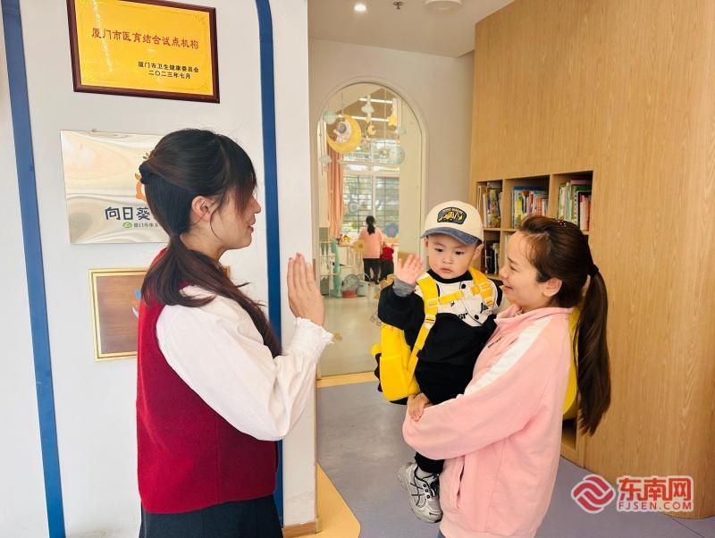 企业员工将孩子送到托育机构(受访单位供图) 从员工福利,到社会公益 2025年9月,90后二胎妈妈田星入职姚明织带。吸引她和丈夫从外省直奔厦门的,正是这家托育中心。 “8个月大的老二送进来,我上班,两不误。”田星说,此前她在家做全职妈妈,“跟外界有点脱轨”。现在,孩子有专业老师照顾,自己有了工作和收入,“生活更有盼头了”。 托育中心不仅吸引着像田星这样的新员工,也让一些老员工解决了家庭内部的“育儿拉锯战”。 员工杨娟娟讲述了和家人的“抗争史”:“以前老人带娃比较溺爱,允许孩子在地上打滚哭闹,食物也比较单一,一岁多了讲话还停留在叠字阶段……”发现孩子的成长问题后,她下了最后通牒:“一定要送!”送托一周后,孩子变化惊人。“突然蹦出一长句话,有十几个字,讲得清清楚楚。现在开朗得很,见人就打招呼。” 从吸引新员工,到化解老员工的家庭矛盾,这家托育机构的影响力没有止步于厂区——周边的村民也来了。 前进村的三胎家长陈玉真比员工更“热衷”于当托育中心的“义务宣传员”。不仅她的三个孩子都送这里,连身边亲友也被她一一“安利”来了。“老师每天记录喝多少水、上几次厕所、睡多久,比我们当妈的还细心。” 陈玉真算了笔账:“外面请个阿姨一个月几千块,这里原来收费1000元左右,我已经觉得很便宜了。”2026年1月,这个“全国首创”正式落地——全部120个托位向社会免费开放。“保育费和餐费全都免了,太惊喜了!”