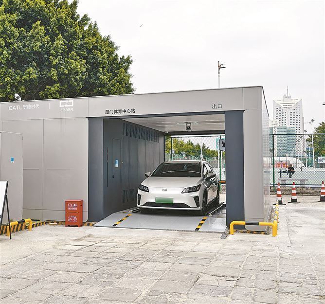 在位于厦门体育中心的巧克力换电站内,换电系统自动在车辆底部进行电池拆卸与更换。(记者 林钦圣 摄) 厦门日报讯(记者 林钦圣 林露虹)昨日,换电标准创新联合体2026年度会议暨标准成果发布仪式在厦门举行。该活动由宁德时代主办,时代电服承办,现场发布了国内首个换电互换标准——《纯电动乘用车螺栓式换电系统互换性技术要求》(T/CSAE 499-2025)。 据时代电服相关负责人介绍,此次发布的标准明确了纯电动乘用车螺栓式换电系统的通用和互换性技术要求,首次实现了标准电池包、机械连接、电气接口、通信协议等多方面统一。 记者了解到,标准不统一仍是制约换电行业高质量发展的一大痛点,尽管国内换电车辆规模与换电站网络建设已取得显著进展,但不同品牌换电资源的兼容性仍有较大提升空间。 作为行业领军企业,宁德时代的巧克力换电持续践行标准化设计理念,目前已实现对纯电平台车型99%的适配能力。在此基础上,由宁德时代联合多家主流车企上汽、广汽、一汽、五菱、北汽等,和换电设备商共同组成换电标准创新联合体,推动了换电行业标准的统一制定和落地。此次换电互换标准的发布,是换电标准创新联合体的首个重大成果,对于提升消费者补能体验,加速全面电动化具有重要意义。 位于厦门火炬高新区的时代电服,主营车电分离商业模式下的电池租赁和换电服务业务。2022年,宁德时代巧克力换电服务在厦门正式启动,厦门也是宁德时代布局的首个“小绿环”城市。目前,厦门落地近10座巧克力换电站,车主可通过“巧克力换电”小程序选择换电站并导航至站点。 “开始换电,请勿开门下车,电池拆卸中,请耐心等待……”昨日,在位于厦门体育中心的巧克力换电站,记者看到,车主驾车驶入换电站后,只需在“巧克力换电”小程序上下达换电指令,换电系统便自动在车辆底部进行电池拆卸与更换,将亏电电池更换成满电电池。从车辆进站到换电出站,车主无需下车,操作便捷。换电全程约99秒,一次换电可提供近500公里的续航。 |