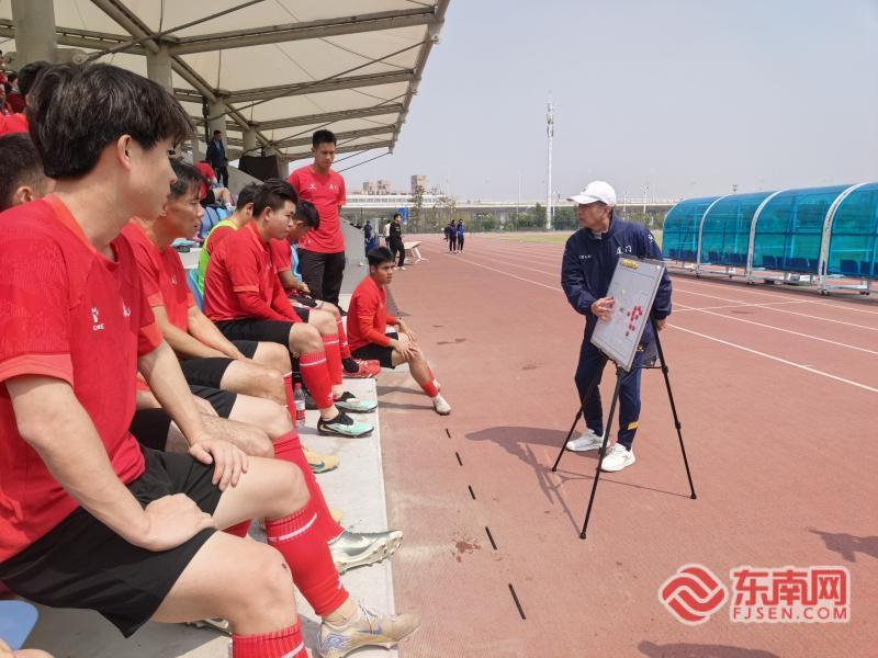 闽超厦门队教练高达明在中场休息时布置战术(东南网记者 刘玮 摄) 新老球员齐发力 初心不改逐冠军 赛场上,双方球员全力以赴、攻防有序,传球、拦截、跑位精准流畅,每一次拼抢都尽显拼搏精神,为现场观战人员奉献了一场精彩的交流对决。厦门队球员们各司其职、配合默契,这份熟稔并非偶然——队中不少球员是并肩多年的老队友,其中留洋葡乙的前场悍将王鑫海、球员陈志海,均出自厦门市瑞景小学,两人当年更是厦门二中斩获全国联赛冠军的核心班底成员,多年的赛场情谊让配合愈发默契。球队里既有坚守热爱的足坛老将,也有朝气蓬勃的新锐力量,大家因足球相聚,为厦门荣誉而战。 谈及参赛初心与备战目标,球队队员纷纷表达了闽超赛事的期待与夺冠决心。曾远赴葡萄牙乙级联赛征战的球员王鑫海表示,从瑞景小学起步、到厦门二中铸就冠军荣光,再到留洋深造,足球早已刻入骨子里,海外踢球经历彻底改变了自己对足球的认知,此次回归本土赛场,就是想和老队友陈志海等人并肩作战,凭借自身经验与实力,助力厦门队冲击冠军。 1981年出生的老将曾伟杰,在厦门草根足坛有着响当当的名号“地雷”,是年轻队员敬重的“雷哥”。作为昔日职业赛场的佼佼者,他曾效力于老牌职业球队厦门蓝狮,拥有职业联赛出场经历,是厦门足球黄金一代的亲历者;2003年从蓝狮队退役后,他于2005年入职国网厦门供电公司思明配网建设一班,深耕配电室安装、送电一线工作多年。即便告别职业赛场,他对足球的热爱从未褪色,常年坚守厦门业余足坛,斩获多项赛事冠军、多次荣膺最佳射手,赛场经验极其丰富。此次身披厦门队战袍,他希望用自己的阅历和执行力辅佐年轻队员,带领全队向着冠军全力冲刺。