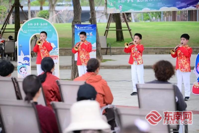 唢呐重奏《金蛇狂舞》。主办方供图 琵琶齐奏《送我一支玫瑰花》、笙重奏《高原放歌》拉开活动序幕,扬琴独奏《美丽的非洲》、竹笛独奏《山村迎亲人》解锁多元艺术魅力,弓弦合奏《赛马》、唢呐重奏《金蛇狂舞》将现场氛围一次次推向高潮,弹拨小合奏《桃花过渡》、竹笛独奏《扬鞭催马运粮忙》则让民乐与民俗风情完美交融。四所学校的小演奏家们凭借扎实的演奏功底、自信大方的舞台表现,为现场市民带来了一场高水准的民乐盛宴,赢得阵阵掌声与好评。 除了精彩的民乐展演,各分会场还结合主题穿插了专属文明节目,让文明宣传更具趣味性和感染力。《文明鹭岛 礼润海沧》深情朗诵传递礼仪之美,《海沧文明“响”当当》《文明公园小卫士》三句半趣味宣讲文明规范,《文明交通要记牢》舞蹈表演唱将交通规则以生动的形式呈现,鼓点、舞步与乐声交织,让文明理念声声传情、深入人心。 活动现场还设置了民乐知识、文明知识小问答环节,市民老少齐上阵,踊跃举手作答,在欢声笑语中近距离感受民乐魅力,巩固文明常识,真正实现了寓教于乐、以乐传文。 据了解,此次活动是海沧区以文化人、以文育人的生动实践,通过将民乐舞台搬到百姓身边,把文明宣传融入休闲场景,精准覆盖市民日常生活关键环节。活动倡导“文明从小事做起”理念,引导未成年人走出课堂、参与城市文明倡导,在民乐演奏中涵养家国情怀,以“小家文明”凝聚城市文明“大家力量”,让育人力量从校园延伸至家庭、社会,推动文明理念在潜移默化中传递。 海沧区委文明办相关负责人表示,此次活动以民乐为桥、以文明为魂,让传统文化与文明新风在湖畔交织共鸣。未来,海沧区将继续深化文化与文明融合的传播形式,持续推动未成年人思想道德建设,让文明新风随乐声浸润心田,汇聚共建文明海沧的暖心力量。 |