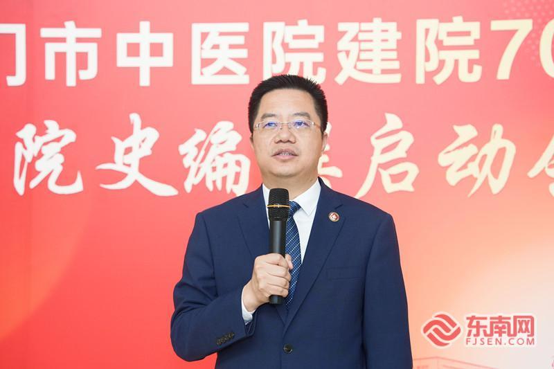 原厦门市卫生局局长、厦门市中医院原院长杨叔禹致辞(厦门市中医院供图) 东南网3月23日讯(本网记者 夏菁 刘学佳 通讯员 江昌铭 张玉辉 黄语晴)3月23日上午,厦门市中医院(北京中医药大学东直门医院厦门医院)在门诊一楼大厅举行建院70周年院史编撰启动仪式。 原厦门市卫生局局长、厦门市中医院原院长杨叔禹在致辞中表示,医院建院70周年院史编撰工作意义深远,他对医院班子高瞻远瞩、谋划推动此项文化工程表示高度赞赏与由衷敬佩。他谈到,盛世修志、秉笔存史是一项系统而厚重的文化工程,能够系统梳理医院发展脉络,为后人留存宝贵的发展轨迹与经验启示。作为医院老员工,他十分乐意投身其中,愿尽己所能、倾己之力,为院史编撰贡献绵薄之力。 厦门市中医院原党委书记、院长陈进春提到,作为医院发展的亲历者、见证者和建设者,他见证过30年院庆,参与40周年院庆,主持组织了50年院庆,此次荣幸受邀参加70周年的院史编撰启动仪式。他认为,历经70年发展,厦门市中医院为厦门医疗资源配置东迁做出贡献,未来将为新质生产力做出新的贡献。