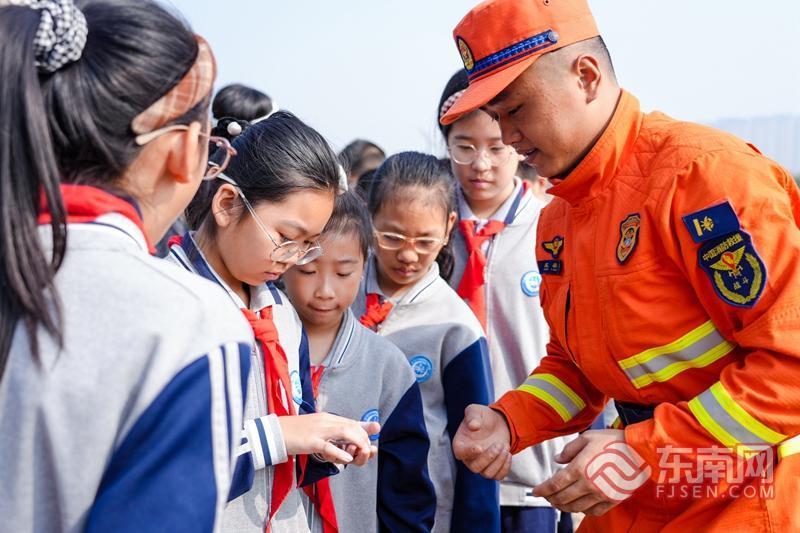 消防员教学生用手表辨别方向(李为展 摄)