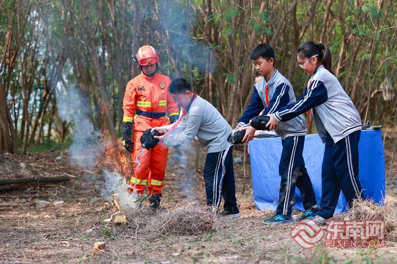 学生体验以水灭火方法(李袁辉 摄) |