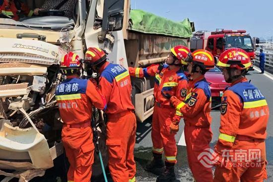 翔安大桥突发车祸司机被困 厦门消防紧急施救