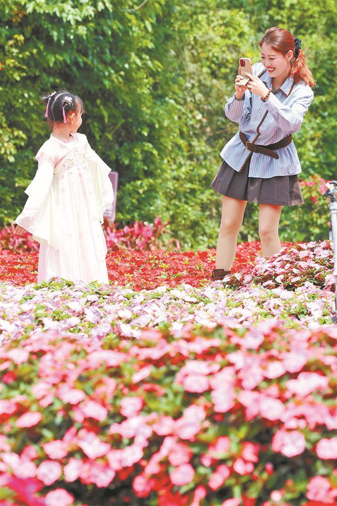 厦门日报讯(记者 吴海奎)清明假期,厦门园博苑花团锦簇,在空明桥花田,4万株新几内亚凤仙竞相盛放,六种颜色的鲜花形成锦绣花海,吸引众多市民游客踏春赏景。漫步花海,仿佛行走在巨大的调色盘中,许多游人身着古风服饰前来打卡,留下春日美好记忆。
