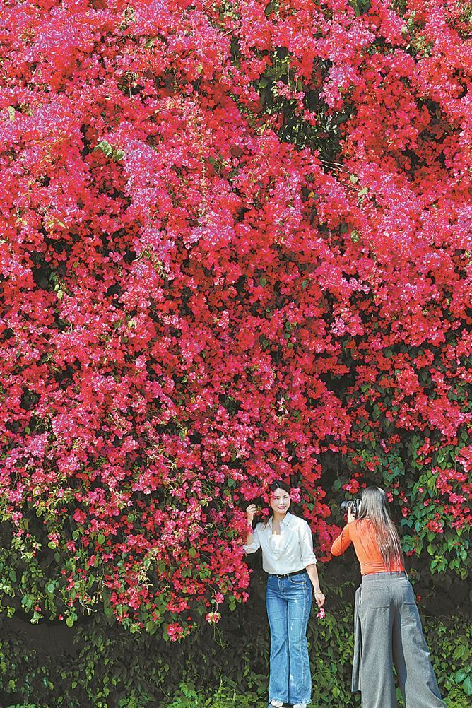 厦门日报讯(记者 唐光峰 摄影报道)四月的鹭岛,处处繁花似锦,集美立言路三角梅盛开,翔安中心公园紫娇花绽放……许多市民趁着好天气出门踏春、拍照,尽情享受春日美景。