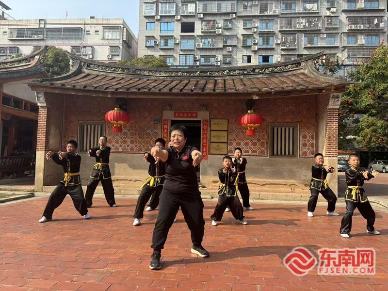 东南网4月20日讯(本网记者 卢超颖 陈淼淼 李奇)在厦门海沧新垵古村,晨雾未散时便能听见整齐划一的拳脚破空声,伴随着雄浑鼓点与灵动醒狮,一套刚劲舒展、气势如虹的拳法在广场上徐徐展开。这便是省级非物质文化遗产——新垵五祖拳。从百年前的民间武风,到如今走进校园、扎根社区、风靡全网,这门承载着闽南文化根脉的古老拳法,在青年传承人邱靖娜与一众武者的坚守创新下,正挣脱传统桎梏,以鲜活姿态续写着非遗传承的时代新篇。 新垵五祖拳历史底蕴深厚,作为闽南武术文化的重要代表,它集达尊拳、太祖拳、玄女拳、猴拳、鹤拳五大传统拳种之所长,招式刚柔并济、步法沉稳扎实,既兼具强身健体与防身自卫的实用价值,又蕴藏着闽南人崇文尚武、坚韧果敢的精神品格,在新垵地区流传数百年,早已成为刻在当地人血脉里的文化印记。过去,五祖拳多以家族传承、师徒口传心授的方式延续,虽根基深厚,却一度面临传播渠道单一、年轻受众偏少的传承困境。而青年传承人邱靖娜的出现,为这份古老武学注入了久违的青春活力。 “小时候就是跟着家里长辈一起练,慢慢就爱上了这门陪伴我长大的拳法。”出身于习武世家的邱靖娜,自幼便在拳脚铿锵的氛围中长大,家族长辈的言传身教,让她与五祖拳结下了不解之缘。 从懵懂孩童到沉稳干练的非遗传承人,数十年的朝夕相伴,让她不仅熟练掌握五祖拳的全套招式与发力精髓,更读懂了拳法背后承载的文化重量。“五祖拳不只是一套功夫,更是我们新垵、我们闽南人的文化根,是老祖宗留下来的宝贝。”谈及与五祖拳的渊源,邱靖娜语气坚定。在她看来,传统武术的传承从不是墨守成规,唯有守其本、求其新,才能让百年拳法真正活在当下。