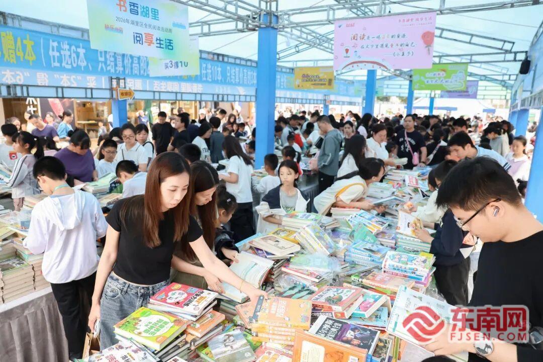 惠民书市 (湖里区委宣传部供图) 东南网4月27日讯(本网记者 邹玒 文洁)4月25日,蔡塘爱琴海购物中心人山人海、热闹非凡。以“书香湖里·阅享生活”为主题的2026年湖里区“全民阅读活动周”在此开启,同步拉开第18届厦门(湖里)城市诵读季、湖里区第18届社区文化艺术季序幕。 两大文化品牌携手,以丰富多元的活动、普惠暖心的服务,为辖区群众送上贯穿下半年的文化盛宴,让文化惠民落到实处、走进人心。 人气拉满 群众直呼“太过瘾” 恰逢《全民阅读促进条例》实施后的首个“全民阅读活动周”,已满18岁的厦门(湖里)城市诵读季诚意满满,筹备了惠民书市、童阅淘书会、阅读计时赛、文艺汇演、作家交流等多元活动,兼顾全年龄段需求,厚植阅读文化根基。 惠民书市前人头攒动,“买2得6”“买3得10”的超值优惠吸引着市民争相选购,湖里本土文化专区前也围满了驻足翻阅的群众。市民张女士特意带上两个孩子前来,她笑着说:“一开始还在想两个孩子可以‘凑单’,买上10本书,结果边看边选,不知不觉就挑选了二三十本,这里不仅优惠力度大,而且品类齐全,这些书够我们看过瘾了。” 厦门市新华书店活动负责人王正刚介绍,本次活动联合北京出版社,同步开启阅读打卡捐赠公益活动,面向湖里区中小学生发放5万张、总价值50万元的阅读打卡券,助力青少年爱上阅读。活动热度持续高涨,仅25日当天,惠民书市便迎来数万名市民到场打卡,累计售出图书5000余册,销售额近9万元。 各个活动点位都挤满了参与活动的群众,欢声笑语与书香气息交织在一起,热闹非凡。商场中庭,一个个小帐篷撑起温馨阅读空间,湖里区图书馆承办的“书香闯关计时赛”吸引146人参与;趣味横生的《全民阅读促进条例》科普,也吸引了200多名群众参与互动。“湖里作家会客厅”内,蔡塘学校初二年级白同学向湖里区作家协会会长韩韵“挑战”作文思路,韩韵耐心引导并鼓励她从熟悉的事物出发挖掘灵感,白同学感叹:“原来作家一点都不遥远,就像身边的好朋友一样。” 舞台上,“潮起湖里·艺起新程”百姓大舞台汇演精彩纷呈,诵读、歌舞节目轮番上演,掌声不断。禾欣社区草根朗诵团负责人林俊杰坦言,团队自2014年起持续参加区级“两季”文化活动。从最初青涩登台,到如今已能独立打造整场唐宋名篇朗诵音乐会,“两季”活动为基层文艺团队搭建了学习交流、展示自我的好平台,“这是属于我们老百姓的舞台,让更多基层文艺爱好者被看见、被认可,也让我们的兴趣爱好有了温暖的落脚点。” 此外,蔡塘学校孩子们在“童阅淘书会”化身“小小摊主”,售卖闲置书籍文创。蔡塘学校副校长洪艺玲表示,这是孩子们第一次走出校门开展这样的活动,孩子们在吆喝叫卖、沟通协商中,不仅增强了社交与财商能力,更让闲置图书、文创产品实现循环利用,践行“资源循环、文化共享”的可持续发展理念,让“分享阅读”成为青少年之间的交流互动方式。 |