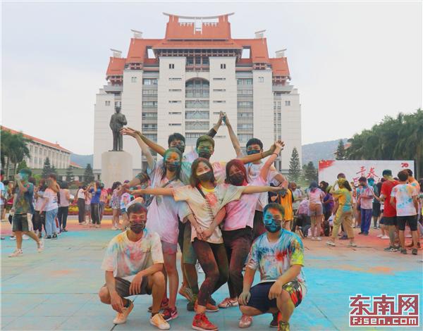 欢乐通关 顾恺恒 摄 东南网10月16日讯(本网记者 刘玮 通讯员 嘉闻)10月13日,厦门大学嘉庚学院举办青春爱国跑活动,献礼新中国70周年华诞。 据悉,本次活动以该校的嘉庚广场为起点,途经小巨蛋水上音乐广场、学生活动中心、南强广场等6个标志性地点。全程设置“爱国情奋斗者”“致敬国家勋章”“流金岁月七十载”等7个游戏点,参赛队伍完成每个游戏点的相应任务后可得到一枚印章,集齐所有印章后到达终点便完成了比赛。 完成比赛的选手回到嘉庚广场,迎接最后一波抛撒彩粉的盛宴,选手们在互相挥洒彩色粉末中传递着快乐运动的精神。此外,本次活动还设立了三个彩蛋点,引导参赛选手回顾七十年来新中国在体育、军事及科技等领域取得的成绩,大大提升了活动内容的丰富性。 “青春是大学生的气质,爱国是大学生的天然情感,我们希望两者能够完美融合,激发师生的爱国情怀,同时展现大学生的青春活力。”该校团委副书记李三伟表示,彩虹跑是该校学生会的一项品牌校园文化项目,具有很好的群众基础。适逢新中国成立70周年,校方在此基础上做了调整优化,期望用这项活动吸引全校师生用奔跑的姿态、绚彩的颜色为祖国庆生。