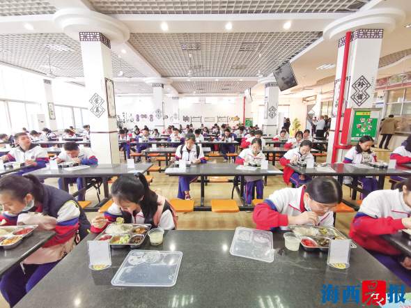 同安一中高三住宿生在食堂隔位就餐。何东方 摄