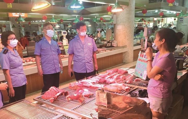 监管人员对生鲜肉品市场开展专项整治行动