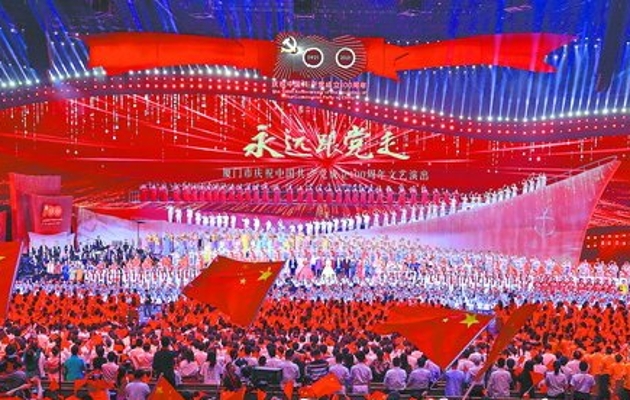 文艺演出现场,1600名厦门各界文艺骨干深情礼赞党的百年风华。(厦门日报记者 黄嵘 摄)