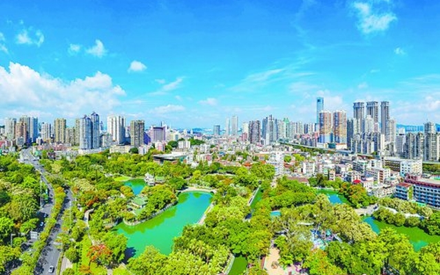 中山公园绿化景观改造提升工程已动工。图为从高空俯瞰绿树掩映下的中山公园。(记者 黄嵘 航拍器摄) 厦门日报讯(记者 谢嘉迪)随着中山公园绿化景观改造提升工程正式动工,园内正悄然发生着变化。昨日,记者在中山公园走访了解到,东半园改造已率先启动,文化景观、植被、水体、设施等项目提升工程逐步展开。 本次改造系2017年来第二次大提升,施工总面积约10.6公顷,其中水系达2.48公顷。 三座大门开展修复 绿植实现“花开四季” 昨日下午,记者来到中山公园,南门附近已经支起了脚手架,工人们正在对大门外立面进行修复、清洗,西门与北门的改造也在同步进行。“三座大门已建成多年,主体结构虽稳固,但外立面上曾出现过表皮脱落、垂珠掉落的情况,修复工作刻不容缓。”项目负责人说,之后还将为三处大门增设夜景灯。 项目动工后,公园南大门封闭,思明区市政园林局在南门与少儿图书馆间开设了通道,供市民通行。沿道路前进,只见工人们正在对“天下为公”石雕进行清洗、修补及字迹重描;音乐亭重建工作在原址上展开;工人们正用“酸洗”等方式清洗醒狮球雕塑…… 为保障园内原有绿植景观,在靠近植被区域作业时,施工队会格外小心,尽量减少使用大型工程机械,保证植株根系不被破坏。 “公园的植物整体基底好,但部分区域有植被老化、生长杂乱等现象。”设计人员说,绿景改造坚持“留、理、营、彩、新”策略,以公园现有的凤凰木、洋紫荆等植物为基础,在公园东南侧新增樱花、紫花风铃木等树种以及耐阴的地被,以此营造“花开四季”的景观效果。