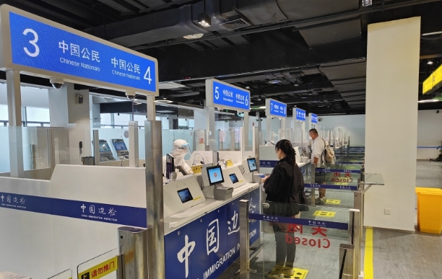 厦门边检总站高崎边检站民警正为旅客办理通关手续。 “您好,您的目的地是哪里?之前都去过哪些地方?”一楼查验大厅,验证台上的边检民警正有条不紊地询问旅客基本情况,耐心地录入旅客的联系方式、去向地等信息,为旅客办理通关手续。此次升级改造后的“第二通道”,高崎边检站在防疫、执法、科技、保障等方面实现同步升级。“边检查验场地分2个区域,遇需要就医、转诊的旅客在二楼边检专用查验室进行查验,正常旅客则在一楼查验大厅办理入境手续。”高崎边检站勤务指挥中心负责人林力文告诉记者,候检及查验大厅面积约占700平方米,目前已设立12条人工查验通道和1条工作人员通道。