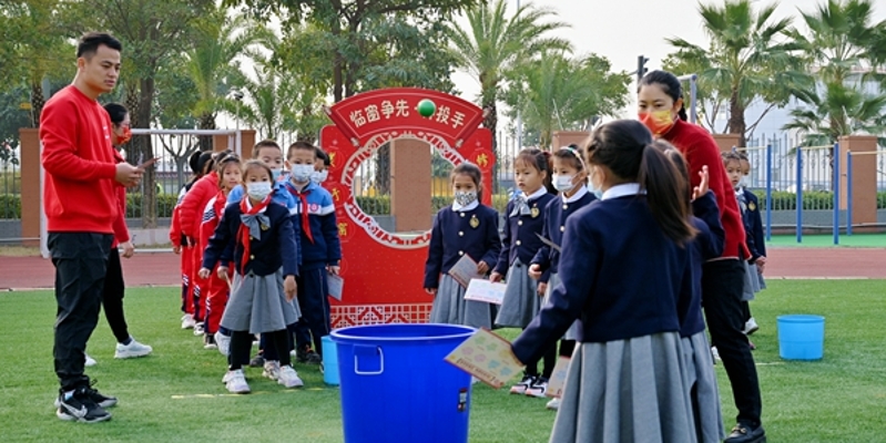 图二:集美区小学学生们开心地玩投沙包。 游戏闯关代替纸笔考试 1月14日,集美区窗内小学开展以“探趣云窗间 集星展五美”为主题的游园闯关活动,闯关内容包括语文、数学、科学、音乐、美术、体育等多个科目,通过有趣好玩的活动考查学生的学科素养。 当天上午是该校二年级专场“闯关”活动。记者在现场看到,学生们在操场上有序排队,每人手持一张“闯关活动积星卡”,按顺序“闯关得星”。游戏共设计了16项闯关活动。每“闯”过一关,老师们就会根据同学们的表现在“积星卡”上记录下不同颗数的星星。 其中,“窗间阅典·查生字”活动考验学生们能否通过部首查字法,在字典中查找出随机抽取的字;“窗中蜜语·会商量”考查学生是否能大方得体和他人就事情进行商量……此外,还有跳绳、投沙包、演奏小打击乐器、用超轻黏土制作各种“食品”等,让学生们在“玩中学”“玩中测”。 “这种形式的活动我们期中就进行了探索,期末又进行了改进完善,目的就是让无纸化测试轻松有趣,同时也能发挥它的激励诊断作用,促进学生全面发展。”窗内小学校长杨娜青告诉记者,活动结束后,老师们还要分析总结孩子们的表现情况,来指导改进今后的教学工作。