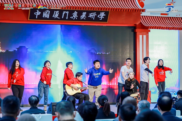 图三:海峡两岸青年合唱。 “集美研学”品牌再升级 “有一种美,叫集美……” 在当天的仪式上,两岸青年声情并茂合唱,生动展现了“集美研学”的特色和活力。 “集美研学”始于“华侨旗帜·民族光辉”陈嘉庚先生的教育初心,并发展成一个有理论体系、有泛营地、有活机制、有实践、有研学特色的品牌。1月11日,“集美研学”产品(升级版)精彩亮相。 升级后的“集美研学”品牌,对课程进行分级分类,重点打造了海洋研学、嘉庚人文、学村乡情、集美美育、心灵契合、创新多元等6大版块,其中包含12条精品线路、280多个特色课程。此外,集美已形成了11名顶级顾问专家,111名可带团的营长级导师,1111名研学初、中级导师的强大研学导师团队。同时,集美还成立“集美区研学单元认定中心”“集美区研学课程研发中心”“集美区研学导师培训认证中心”三个中心,规范推进研学工作。 值得一提的是,现场集美区人民政府和大田县人民政府就“集美学村和第二集美学村共同推进研学旅行”签订战略合作协议,集美区文化和旅游局和台北市教育人员产业发展协进会、北京新东方沃凯德国际教育旅行有限公司厦门分公司签订推进研学旅行战略合作协议,加强“集美研学”对外合作形成发展合力。
