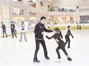 市民在中华城冠军冰场里快乐滑冰。记者 唐光峰 摄