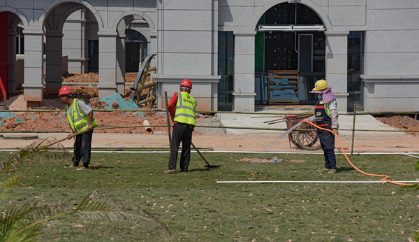 图二:工人在四川大学华西厦门医院进行草坪铺设作业。 四川大学华西厦门医院属省、市重点项目,项目位于集美新城沈海高速与杏锦路交叉口西南侧,建筑面积约26.4万平方米,总用地面积约10.5万平方米,建设内容包括综合性医院、大型医疗设备用房、教学与科研用房、华西厦门研究院等。在外观设计上,该医院建筑既保留华西医院原有的建筑风格,又通过浓浓的闽南建筑风韵预示着医院的“本土化生长”。 据介绍,经过两年多的建设,目前项目已全面进入室内外装修阶段,其中进展最快的4号楼和5号楼,机电工程基本完成,正在进行精装修,预计将在5月底完工。四川大学华西厦门医院党委书记廖志林介绍,该医院6月试运营阶段将引入华西医院“金字招牌”华西口腔及神经调控等门诊服务,暂不开放住院病房。今年年底医院正式开业时,将开放住院治疗,陆续引入妇产中心、儿童中心、泌尿中心、呼吸中心、消化中心等国家级特色重点专科。 |