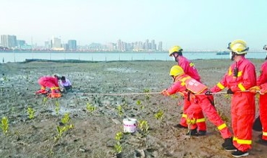一女子借道滩涂深陷淤泥 救援队徒手挖泥施救