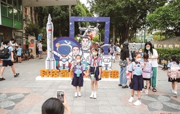 槟榔小学一年级新生在校门口拍照留念。 记者 陈理杰 摄 海西晨报讯(记者 许蔚菡 李慧婷 唐光峰 通讯员 吴志群 陈永岚)昨天,厦门中小学开学,全市65万名中小学生返回校园。新学期,厦门新开办了60所学校,增加6.4万个中小学幼儿园学位,是历年最多的。和往年一样,各校以仪式满满的开学式迎接学子们的回归,开启新学期、新气象。 [槟榔小学] 无人机表演科技范十足 校门口腾飞的火箭、科技范十足的空间站、威武的宇航员,成为槟榔小学学子和家长开学第一天的“网红”打卡点。在“科技强国,未来有我”开学式上,酷炫的无人机表演拉开了槟榔小学科技节的序幕。 槟榔小学的龙猫创客社团可有名呢!今年暑假,他们“征战”国家级、市级多个赛事,佳绩频传。这些优秀的“小龙猫们”在开学式上受到校领导嘉奖。学校还颁发了“红领巾奖章”三星章,为一年级新生送上高年级学长亲手制作的航天书签等。 传承红色基因,争做时代新人!开学式在全体师生共唱《我和我的祖国》的歌声中落幕。新的学期,槟榔小学学子们秉持“科技强国”之心,逐梦起航! [江头第三小学] 校园大“变脸”,惊喜多多 短短一个暑假,厦门市江头第三小学来了个“魔术变脸”——崭新的校门敞开“怀抱”,多彩的中庭绘出了“新广场”,敞亮的多媒体“新讲堂”高大上,学校说,这一切都是学校给同学们准备的“大惊喜”。 昨天上午,学校举行了新校牌揭牌仪式。老师们一起夹道欢迎学子们归来。一年级新生还有属于他们的仪式:朗朗上口的行为规范口诀,为他们争做“新时代好少年”打下基础;别开生面的“校园打卡地图”行动,让萌娃感受到出游般的乐趣……在全体一年级任课老师精心设计下,一堂堂生动有趣的适应性课程等待着萌娃们。 [莲龙小学] 跨越新目标,挑战新征程 昨日早上,厦门市莲龙小学的校领导带领大队委早早在校门口等候,红地毯上摆放着一个个写着目标的牌子,意味着新学期勇敢地跨越新目标,挑战新征程,一起向未来。 孩子们进学校后,将一张张暑期参与“小手拉大手,文明路上走”实践活动的照片贴在展板上。8点30分,各班开展“文明厦门 因我而美”主题班会,通过“破冰游戏”、心理健康小活动,营造愉悦的氛围;分享暑期文明实践活动心得,为文明典范城市创建添砖加瓦。 [厦门外国语学校附属小学] 新校投用,迎来新学生 昨日上午,“同行 致远”厦门外国语学校附属小学教育共同体开学典礼在厦门外国语学校附属小学(以下简称“厦外附小”)湖滨总校、万景校区和禾祥分校同时开启,2180多名师生共同参加了这场意义非凡的开学式。 据介绍,厦外附小万景校区和禾祥分校均是今秋开办的新校。湖滨总校和万景校区分别招收一年级6个班和3个班,禾祥分校招收一年级5个班。 未来,厦外附小教育共同体将发挥名校辐射带动作用,抱团发展,实现科学联盟;找准重心,创新发展模式;多策并举,推进整体发展。学校表示,将以“六联”教育模式,实现教育共同体的均衡、优质、高位发展,最终让更多学生享受优质教育资源。 [寨上小学] 新学期“车票”送给学子 昨日早上,厦门市寨上小学校领导在“开学啦”的拱门前迎接学子们。四年(4)班的同学们收到开往五年(4)班的车票,带上行囊再出发。 在厦门大学附属科技中学翔安校区高二(26)班,开学第一课上,同学们坐姿端正,聚精会神,以饱满的姿态迎接新学年的开始。 而在厦门市翔鹭小学,陈春梅校长以《站在新起点,树立新目标》为题,对同学们送出新学期祝福。她对同学们提出三点希望和要求:树立一个信心——我能,我行;创立一个学风——认真刻苦;培养一个习惯——自觉自律。 新学期,新气象,心理调适来帮忙。东渡二小的心理辅导员为全体学生做了“启动心能量,赋能新学期”心理健康教育,让孩子们以阳光的精神状态走进新学期。 |