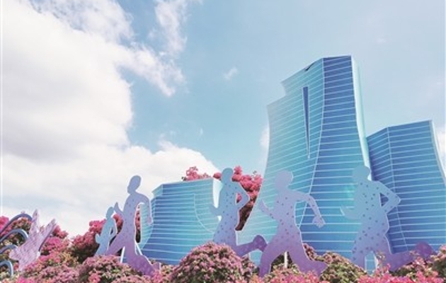 以厦门中心大厦为主构筑物的景观小品为马銮湾带状公园增色。记者 王晓萍 摄