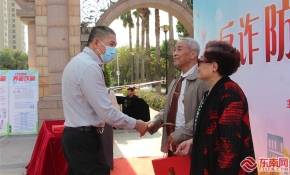 集美区卫生健康局直属党委副书记陈再生为金婚夫妻送上礼物。东南网记者 李霖 摄 东南网10月26日讯(本网记者 李霖)每年的10月是全国敬老月,今年活动的宣传主题是“反诈防骗 敬老助老”。围绕主题,10月25日下午,由厦门市集美区卫生健康局、侨英街道办事处联合举办的2022年全国“敬老月”系列宣传活动在信毅社区拉开帷幕,为社区老年人送上“健康大餐”。 现场,两家医养结合机构的近十名医务工作者为老年人测量血糖、血压,提供针灸推拿理疗、健康咨询服务,还组织老年人开展“骨质疏松分享测试”等,帮助他们了解自身身体情况,指导老年人预防骨质疏松。 除了享受专业的健康服务,活动还邀请辖区民警现场开展反诈防骗宣传。民警陈丰欢通过真实发生的诈骗案例,为老人们预防网络诈骗打了一针“强心剂”。此外,社工还在现场设置了宣传摊点,普及垃圾分类、移风易俗、扫黑除恶、孝廉文化等,开展智能产品教学,携手共建文明和谐社区,为文明城市创建助力添彩。 “漫长的50年中,一对夫妻能够做到不离不弃、相濡以沫、互敬互爱,是一个家庭的幸福和骄傲,更是社会的最大福祉。”活动特别邀请到两对金婚夫妻,集美区卫生健康局直属党委副书记陈再生、侨英街道办事处三级调研员王进法向两对老人送上礼品和祝福,将此次活动推上了高潮。 接下来,活动还将在凤安社区、凤林美社区、兑山社区、东安社区相继开展。除了智能产品教学、反诈宣传等“固定节目”,还将依照相应社区老年人的需求,开展党的二十大精神宣讲、创意剪纸活动、老年人养生课堂等,为辖区老年人送上一份温暖贴心的“节日大礼包”。 据集美区卫生健康局相关负责人介绍,此次活动旨在借敬老月契机,搭建邻里互动交流、老年人风采展示的平台,展现集美老年人蓬勃向上的精神风貌,并向老年人倡导文明行为,提高老年人防骗意识,助力文明城市创建,弘扬尊老敬老美德,传颂和谐文明之风。