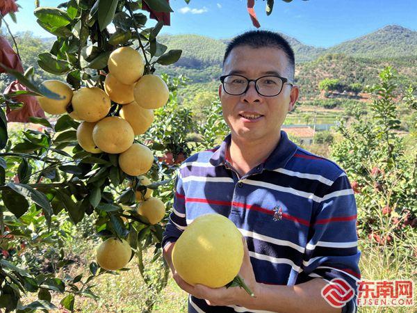 黄金葡萄柚迎来丰收。(同安区供图) “柚”惑十足 黄金葡萄柚迎来丰收 葡萄柚与常见柚子不同,其身材娇小玲珑,却又圆润饱满。挂果果实密集呈簇生状,似葡萄成串垂吊,因此得名 “葡萄柚”,属橘柚科类水果。 走进西源村大溪源生态农场,成串的葡萄柚挂满枝头,如同一串串金色的大葡萄惹人垂涎,满园都飘着葡萄柚特有的清香,果农将品相合格的果实摘下并装袋,随后将一袋袋柚子搬运到卡车上。 农场共种植了近500棵葡萄柚,在精心管理下,预计产量能达4万多公斤。销售上,农场也是下足了功夫,线上线下结合推广,刚成熟就赢得不少顾客喜爱。 西源村大溪源生态农场种植的葡萄柚,个大皮薄肉多,每颗重量约0.5公斤,一口咬下,八分甜两分酸,多汁又清爽,果粒颗颗分明,脆嫩可口。酸甜掺杂的果肉,比起单一的纯甜更多一丝回味。 为什么农场的葡萄柚口感如此独特?农场主陈海彬告诉记者,农场坚持原生态种植,并采用套袋等物理隔离方式来防治虫害,保障葡萄柚的安全品质。果园里的葡萄柚有严格的种植管理原则,每个葡萄柚果实全程都是树上熟,人工除草,吃到的每一块果肉,都很安全。 此外,农产坚持生态循环种养,使用的肥料皆是农家肥。2021年,农场被评为厦门市生态循环模式科普教育学习基地。 眼下,葡萄柚已进入最后的采摘期,采摘时间可持续至12月中旬。