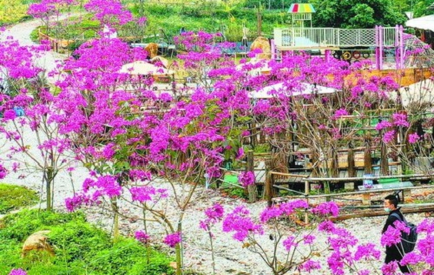 昔日的荒山成了花的海洋。 厦门日报讯(记者 吴晓菁)近日,位于集美区后溪镇溪西村紧邻灌口中路的一片紫风铃,成了市民游客争相前往的乡村游打卡地。昔日的荒山成了花的海洋,种上了紫风铃木,为市民提供休闲、游玩、拍照的好去处。 这片位于耕福园家庭农场的紫风铃木共有230余亩,是厦门市茜芳亭园艺有限公司历经七年时间引种研究、培育改良的。“2015年,我们从泰国引进了产自巴西的紫风铃品种,为了让母株能够适应厦门的气候,我们进行了驯化改良。”园艺师张井泉介绍,改良后的紫风铃花瓣更厚,不易掉落,颜色也更加鲜艳,更适合观赏。 目前虽已近落花期,但仍掩不住这片紫风铃的浪漫梦幻。近看,每一个花球都由一朵朵像风铃一样的小花组成,十分别致。张井泉介绍,紫风铃还会给自己“换装”,随着时间推移,花瓣从深紫色慢慢变成淡粉色,美不胜收。 紫风铃为原本不太热闹的溪西村带来了人气。今年春节,正值花期的紫风铃引来了络绎不绝的游客。“最高峰的一天,有三四千人来赏花。”溪西村驻村选调生陈颐介绍,紫风铃花海所在的地块原来是一片山地,堆满垃圾,人都不敢往那里走。现在种满了花,环境变好了,也吸引了一些年轻人返乡创业。 溪西村处于城市与农村交会地带,半城半村,紧挨着软件园三期。厦门市第5片区驻村工作队队长罗晓东说:“这是一个既有城市因子又有乡村因子的临界村,既能望得见都市,又留得住乡愁,我们希望结合村情,推动村民发挥主人翁意识,鼓励和培育现代休闲观光农业项目,让溪西村成为软件园三期的后花园。” 点击 紫风铃会“换装” 紫风铃木是紫葳科、风铃木属落叶乔木,原产巴西、巴拉圭、危地马拉、阿根廷等中南美洲的国家和地区,性喜光,稍耐荫。溪西村的这片紫风铃共有230余亩,为2015年从泰国引进的巴西紫风铃品种,历经七年时间引种研究、培育改良,这片紫风铃花瓣更厚,不易掉落,颜色也更加鲜艳,更适合观赏。紫风铃还会给自己“换装”,随着时间推移,花瓣从深紫色慢慢变成淡粉色,美不胜收。 |