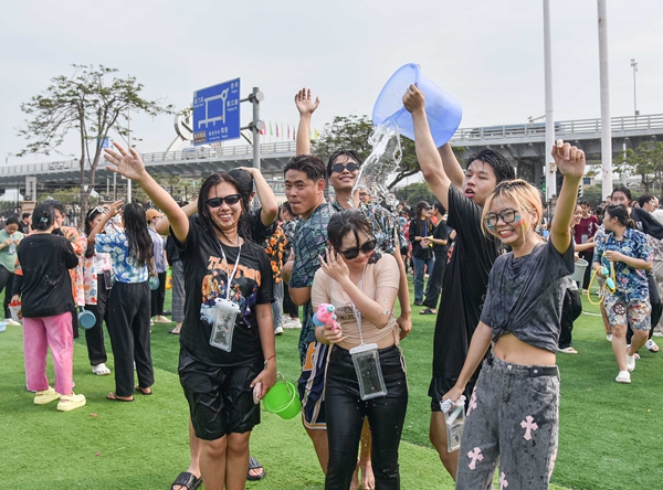 开幕仪式在别具特色的泼水节游行仪式中拉开序幕,泰国等留学生纷纷献上了精彩的传统民族舞蹈,同学们还向在场的嘉宾、老师们行“滴水礼”,表达感谢和祝福。随后,在欢乐喜庆的音乐中,泼水活动正式开始,同学们拿起水瓢、水盆、水枪等,相互泼水,共同分享节日的喜悦、表达对彼此的祝福。(记者 林志杰 摄影报道 来源:集美报)