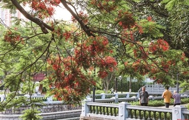 满城尽染丹霞红 厦门街头巷尾凤凰花绚丽开放