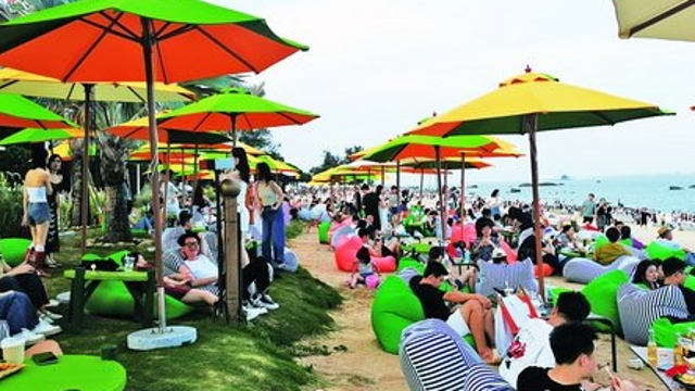 集美十里长堤景点游客火爆。 陈嘉新 摄 厦门晚报讯(记者 吴笛 戴懿 龚小莞 吕嘉捷 陈嘉新 实习生 赵睿洁)到网红打卡地拍照留念,在沙滩上吹海风、听音乐、品美食,连续多年到南普陀拍荷花,文明骑行既锻炼了身体又让身心舒畅……端午假期,市民纷纷走出家门,享受轻松惬意的休闲时光。 计划环岛60公里 意外参加了大型骑行 昨日是端午假期首日,记者来到集美十里长堤附近,发现现场已有不少市民游客,有的在拍照打卡留念,有的在草坪上铺上野餐布休憩打牌聊天,现场十分热闹。 也有市民选择不一样的方式过端午节,记者在走访过程中遇到一名骑行者邱先生,邱先生打算用3个小时进行约60公里的环岛骑行,以文明骑行的方式过节。他告诉记者,本来他想在上午进行环岛,骑到集美海堤入口的时候刚好遇到几个骑友往杏林湾方向去,就跟着过去凑凑热闹,现场报名参加了大型骑行活动,活动有四五百人参加。 邱先生说,他一直坚持锻炼,趁着端午假期闲下来,觉得还是多运动运动,既锻炼了身体也身心舒畅。他还坚持长跑11年了,已经连续参加过几届的厦门马拉松赛,“一开始以为长跑很无聊,没想到越跑越有意思,运动让自己更加自律,也能够挑战自我”。 到了傍晚,伴随着艺人弹奏出的轻快悠扬的旋律,市民游客迎着晚风,以草地为席,天空为幕,在音乐中释放自我。有的跟着节奏打节拍,有的跟着音乐舞动起来。 “在十里长堤,我可以感受到轻松的音乐氛围,而且旁边有海有夕阳,心情很愉悦,是一次全身心的放松。”游客林女士告诉记者。 草地上扎起帐篷 孩子描绘起假期画卷 昨天下午6点半,记者堵车半小时终于来到环岛路黄厝海滩玩月坡。海滩上放眼望去人头攒动,颜色鲜艳的阳伞和桌椅沙发,在沙滩边排开,市民游客或坐在这里聊天吃东西,或走到海水里戏浪拍照。有的人还在离沙滩比较远的草地上扎起帐篷,一家人吃着烧烤喝着啤酒,十分惬意。 记者在现场发现,一个帐篷旁还铺起好几米长的图画纸,几个孩子席地而坐涂涂画画,描绘属于她们的假期画卷。一旁的妈妈负责拍照,爸爸负责做好后勤保障工作。另一边的草地上,一个女孩坐在桌旁专注地看着书,桌旁还放着一杯咖啡。 市民杨女士告诉记者,她已经有好几年没来玩月坡了,没想到沙滩上的休闲设施和各种服务这么完善了。 连续多年到南普陀 拍荷花戴五彩绳