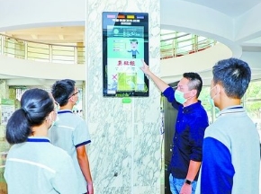 厦门六中老师为同学介绍预警信息发布终端。 (记者 张奇辉 摄)