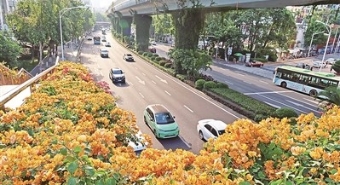 莲前卧龙西路天桥,黄色三角梅耀眼。记者 陈理杰 摄