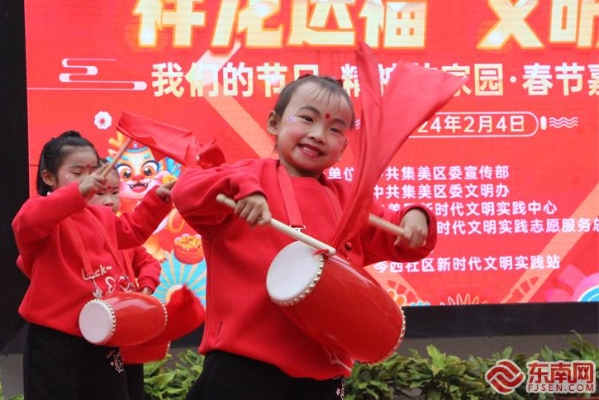 腰鼓舞《我是小可爱》(东南网记者 李霖 摄) 东南网2月5日讯(记者 李霖)2月4日下午,“祥龙送福,文明新春”我们的节日·精神的家园·春节嘉年华活动在厦门市集美区嘉庚书房举办,微才艺、微宣讲、送春联和丰富多彩的游园活动,让小小的嘉庚书房充满浓浓的新春祝福。 当天下午阴雨蒙蒙,但居民参与的热情不减。腰鼓舞《我是小可爱》敲出喜庆,跳出欢腾;舞蹈《梨花颂》、剧目舞蹈《抬龙王》展现出传统文化的多元传承与发展;合唱《鼓浪屿之波》唱出对团圆的期盼……现场,辖区各文艺团体拿出“看家本领”,秀出微才艺,花式贺新春。 “龙飞凤舞万象新,腾空逐浪千家春,集纳百福照天祥,美影十方道和顺。”厦门市书法家协会会员余薛锋现场悬空双手书法,以藏头诗的方式送上了“龙腾集美”的祝福。 活动还邀请集美大学副教授姚庐清以“认真学习党章,自觉尊崇党章,党的二十大党章修正案的时代特点”为主题开展理论学习微宣讲,让党的创新理论“飞入寻常百姓家”。 除了邀请书法老师现场写对联、送“福”字,现场还举办“年画拓印”“手工年画”“填词吟诗”“手作美食”“新语新愿”等游园活动,以居民喜闻乐见、生动活泼的形式,营造了浓厚的节日氛围。现场还设置了“赏年画 过大年”专区,一张张色彩鲜艳的年画,用年画“描绘”记忆中的年味,展现出传统艺术的特有魅力。 本次活动由中共集美区委宣传部、中共集美区委文明办主办,集美区新时代文明实践中心、集美区新时代文明实践志愿服务总队承办,嘉庚书房、岑西社区新时代文明实践站协办。