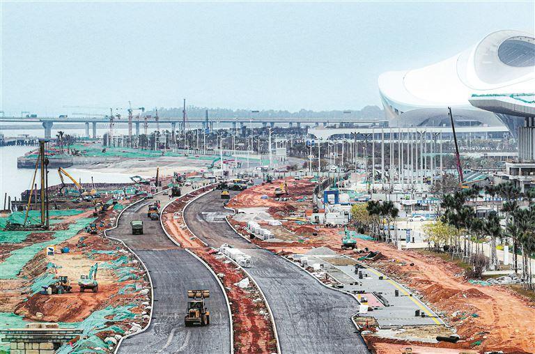 凤翔新城会展片区市政路网正在加快完善中,图为滨海公园大道在摊铺沥青。(厦门日报记者 卢剑豪 摄) 重点项目不停工 为城市发展蓄势 岁末年初,凤翔新城会展片区市政配套道路一期工程和滨海公园大道工程施工现场热火朝天。 “我们脚下的这条路叫展辉路,一头连着地铁站点、一头连着厦门奥体中心,要赶在3月1日前完工,保障2024年CBA全明星周末的顺利举办。”市政集团开发公司项目经理朱俊杰说,春节期间,有60多名工人奋战在工地上,主要完成人行道铺砖、路灯灯杆立杆、绿化种植、透水混凝土摊铺、沥青摊铺等作业。 位于两岸区域性金融中心片区的安置型商品房——碧海嘉园项目正以肉眼可见的速度“长高”。 “春节期间,1号楼主体框架又更上一层楼了!”市政集团工程公司项目经理魏卫斐说,碧海嘉园项目是省、市重点民生住宅项目,建筑面积近5万平方米,合计250套住房,目前正全面开展主体结构施工,力争在2024年7月实现主体封顶,2025年交房,让在外过渡的居民早日迁入新居。 新春时节,集美杏林湾内,几艘绞吸船正在清淤作业,长长的吸淤管扎入水底,一刻不停地“吸”进淤泥,输送至体育岛的功能池进行净化处理。“我们这个工地就好比一座大型的工厂,各道工序流水线生产,接力处理淤泥,为杏林湾深度美颜。” 市政集团开发公司项目经理吴舟波介绍说。 杏林湾生态环境整治提升一期工程是提升城市生态环境质量的重点工程,主要施工内容包括疏浚、底泥脱水、底泥回填修复、底泥原位修复、鸟类栖息地构建、体育岛加高等,清淤总面积约2.2平方公里,清淤总量约313万立方米,截至目前完成项目总体进度26%,预计于2025年完成施工任务。 再把目光转向马銮湾新城,南岛九年制学校项目建设也在如火如荼进行中。该项目总建筑面积约为48900平方米,拟建设60班九年制学校(小学24班,初中36班)。 “目前,项目正在进行桩基施工和土方开挖。我们根据实际的地质条件,严格把控桩基质量,总共2300多根桩基,已完成1800多根。”市政集团开发公司项目经理陈智雄在老家过完年,就匆匆返回项目部协调解决具体事项。 市政集团工程部相关负责人介绍,春节期间,集团共有18个项目不停工,包括道路、学校、生态环保、综合管廊等项目,日均施工人数近600人,预计完成投资3748万元。