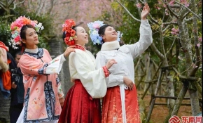 樱花吸引游客前往拍照。(林克烈 摄) 东南网3月3日讯(记者 邹玒 文洁)初春与樱花相遇,一曲“春之乐章”,在厦门市同安区莲花镇白交祠村悄然奏响。2日,“醉美高山,共度光樱”第四届白交祠樱花旅游文化节在白交祠村开幕。浪漫唯美的茶园樱花以及多姿多彩的踏青活动,吸引了众多市民游客登高游赏。 沿着白交祠的樱花步道前进,深深浅浅、层层叠叠的粉色樱花与青山相得益彰,如云似霞,让游客好似在画中游。近日,白交祠村的茶园樱花再次迎来盛放期,市民游客除了可以登高欣赏绚丽樱花与壮阔云海外,还可观摩极具特色的踩街活动,动感喜庆的电音三太子与舞龙队伍绕村而行。花田国风音乐会也在白交祠村光明顶举行,微风轻拂、弦乐相伴,共享美丽春光。 此外,春日集市体验非遗手作DIY、汉服换装打卡领奖等丰富多彩的活动,吸引不少市民游客上山,解锁不一样的乡村新玩法。白交祠村茶园樱花赏花期预计将持续至3月中旬。 2日,樱花旅游文化节现场还举行了“春风习来”2023年高山摄影大赛颁奖仪式及摄影展。大赛自2023年12月30日在军营村启动以来,得到各界摄影爱好者的积极参与,共收到省内106位参赛者投稿1084张作品,最后评选100张获奖作品,并在樱花旅游文化节现场集中展出。