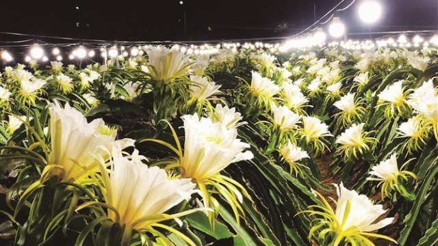 灿若星河 远观白花朵朵 近赏暗香浮动 翔安大宅火龙果又开花了,花期只有三天,吸引很多市民游客前去赏花 翔安大宅火龙果又开花了,花朵舒展优雅。 厦门晚报讯(文/图 记者 戴舒静 通讯员 许竞雄 林木阳)最近,翔安大宅火龙果又开花了,洁白无瑕的花朵犹如一个个花仙子,绽放在夜空下,吸引了很多市民游客前去赏花。 昨晚9点多,市民洪女士带着家人和孩子驱车前往大宅社区,准备一睹火龙果开花的风采,进村时发现村路竟出现了堵车,原来前来赏花的市民太多了。 在灯光的照射下,火龙果基地内宛若星辰大海,暗香浮动,一朵朵洁白硕大的火龙果花在绿色的藤条上慢慢绽放,花瓣缓缓舒展,优雅而浪漫。 “太漂亮了!”很多市民看到此景,都忍不住拿出手机对着火龙果花一阵拍照发朋友圈晒图。 “这是今年红心火龙果第四批和白心火龙果第二批开花。”大宅社区干部陈灿红告诉记者,每年火龙果都会开12批花左右,每批花期只有3天,且都只会在晚上开花,日出时凋谢,犹如“昙花一现”。他表示,这批已进入第二天,如果市民要欣赏,需抓紧前往。 据了解,火龙果花开后三天,如果坐果成功,花会黄掉,结出深绿果子,再过40天,火龙果成熟。 值得一提的是,火龙果花不仅美丽,香气扑鼻,还可以食用,有保健功效,其花粉花青素含量高,并且高营养、低热量、低脂肪,富含维生素和氨基酸等。全花可生食或加工后食用,具有清火、润肺、止咳、明目、降火的功效。 |