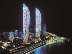 连续两晚 厦门为教师亮灯 时间:18:30-22:30;地点:世茂海峡大厦、中闽大厦、绿发大厦、狐尾山气象塔等 昨晚,厦门世茂双子塔、绿发大厦等地标建筑为人民教师亮灯。记者 陈嘉新 摄 厦门晚报讯(记者 郭文娟)今天是第40个教师节。昨晚和今晚,厦门连续两个晚上举行“为教师亮灯”公益活动,致敬辛勤园丁。 亮灯时间为18:30-22:30。今晚,世茂海峡大厦(世茂双子塔)、 中闽大厦、绿发大厦、狐尾山气象塔等地标建筑的LED屏,将继续高频率滚动刊播庆祝教师节的标语,包括“弘扬教育家精神,加快建设教育强国” “热烈庆祝第40个教师节”“老师,您好”“教师节快乐”等。 最近几年,厦门都在教师节为教师亮灯。通过在城市地标建筑亮灯,用璀璨灯海向全市教育工作者献上一份浪漫的礼物,致以节日问候和崇高敬意。 |