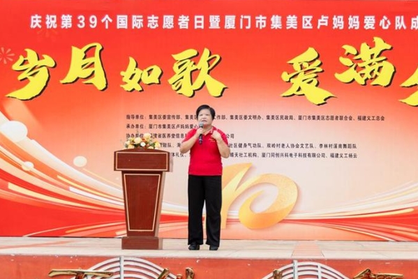 卢妈妈爱心队负责人卢秀毅致辞(东南网记者 李奇 摄) 东南网10月30日讯(记者 李霖 李奇)10月27日下午,“岁月如歌,爱满夕阳”庆祝第39个国际志愿者日暨厦门市集美区卢妈妈爱心队成立十周年活动在厦门市集美区杏林文体中心举办。 现场,集美区各文艺团体轮番献上腰鼓、舞蹈、朗诵、歌仔戏等丰富多彩的文艺演出,为卢妈妈爱心队十周年送上庆贺。福建义工总会、集美区志愿者协会、爱心企业、受助老人代表等相继登台致辞,表达了对爱心队的期许和感激。 据悉,卢妈妈爱心队前身为“厦门义工俱乐部卢妈妈爱心队”,于2014年成立,以“一切都为了老人有尊严地活着”为团队服务宗旨,开展敬老志愿服务。在集美区委文明办和集美区民政局的支持和帮助下,队伍于2017年元月正式注册并更名为厦门市集美区卢妈妈爱心队。 一直以来,卢妈妈爱心队深耕敬老公益事业,走进集美区偏远乡村、敬老院和80户需要帮助的家庭,通过“六助三关怀”的模式(六助即助餐、助洁、助浴、助乐、助急、助医,三关怀包括情感、生活和健康)开展持续性的精准帮扶,大大提高了受助家庭的生活质量和幸福指数。 十年来,团队从几个人发展到如今实名注册志愿者200多人。该队伍日渐壮大的同时,还延伸服务触角,在田头村、黄地村、李林村和东辉村相继揭牌成立了助老服务点,助推服务常态化、多样性发展。截至目前,该队伍组织形式多样的志愿服务活动600多场,服务15万多人次,总志愿服务时长达2万多小时。 “2020年福建省志愿服务项目大赛银奖”“2022年度厦门市学雷锋志愿服务最美志愿服务组织”……近年来,卢妈妈爱心队获得了40多项省市级荣誉。作为团队的“主心骨”和“大家长”,去年,卢秀毅登上了2023年第一季度“福建好人榜”助人为乐类榜单。今年9月,团队选送的“志愿桑榆暖——精准助老关爱项目”在第六届“善行八闽——公益慈善项目大赛”中脱颖而出,荣获一等奖。 |