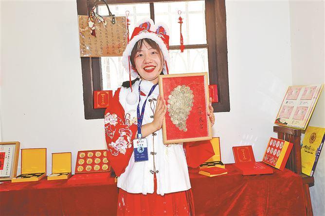 市民现场试用毛笔。 体验“活着的非遗” 一分钟学会创作版画 一块刻有图案的梨木、一把圆刷、一点朱砂,即使没有任何基础的市民,也可以在一分钟内“创作”出一幅古典艺术作品。昨日,杭州十竹斋艺术馆馆长魏立中带着“活着的非遗”来到了展览会现场,让市民近距离体验版画的魅力。 商务印书馆特地准备了多款年度畅销书籍,针对本次展览设置了工具书、社科图书全场五折的特惠,还首次带来了文创产品。“厦门读者一直是我们最忠实的粉丝!”商务印书馆涵芬楼书店总经理助理李志萍说,“这次我们带来的各种书籍,都是针对厦门读者喜好精挑细选的。”他们每年都来参展,和厦门建立了深厚的感情,厦门读者也充满热情。 江西美术出版社则带来了精美的碑帖,以及地方文化特色浓郁的瓷器等文创作品,如含有“八大山人”元素的冰箱贴。“我们年年都来,这个活动无论对厦门的书画爱好者还是销售方都是很好的交流平台。厦门的文化氛围很浓厚,大家很支持也很热情,跟当地书画爱好者近距离的交流对我们研发产品也有帮助。”江西美术出版社社长、总经理刘芳表示。 工作人员展示钱币。 观赏古人文房雅趣 市民说色香味俱全 厦门大学艺术学院教授、福建省书协副主席陈胜凯第一时间来观展,并花上千元订购了一支珍贵的羊毫笔。“我在厦门找了很久都没找到,这次一看到就订了。”他说,自己年年都来淘好东西,不过感觉这次展览又升级了,“不要小看这些文房四宝,即使是一个小小的砚台,里头都承载着古人的审美和智慧,这次把展出放在老别墅里,让文化具体地聚拢在这个空间里,不仅看得到,甚至闻得着墨香,可以说色香味俱全。” 主办方介绍,今年的展会邀请了西泠印社、商务印书馆、成都诗婢家、成都杜甫草堂、江西美术出版社、杭州十竹斋等知名文化机构、百年品牌参展,还有安徽泾县、江西文港等文房四宝产地商家组团亮相,并设有“星火集——厦门优秀青年书法家创作展”“翰墨缘 两岸情——台湾新闻界书画邀请展”“日本回流珍稀碑帖展”等三大展览,让玩家、藏家、行家及众多书画艺术爱好者与原产地精品、正品零距离接触和交流。