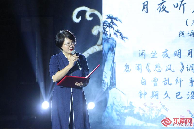 厦门市教师朗诵艺术团副团长时欣欣诗朗诵《月夜听卢子顺弹琴》(东南网记者李霖 摄)